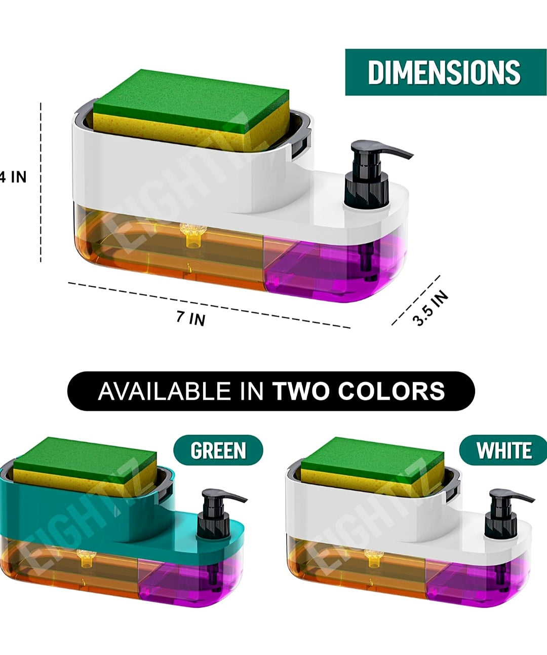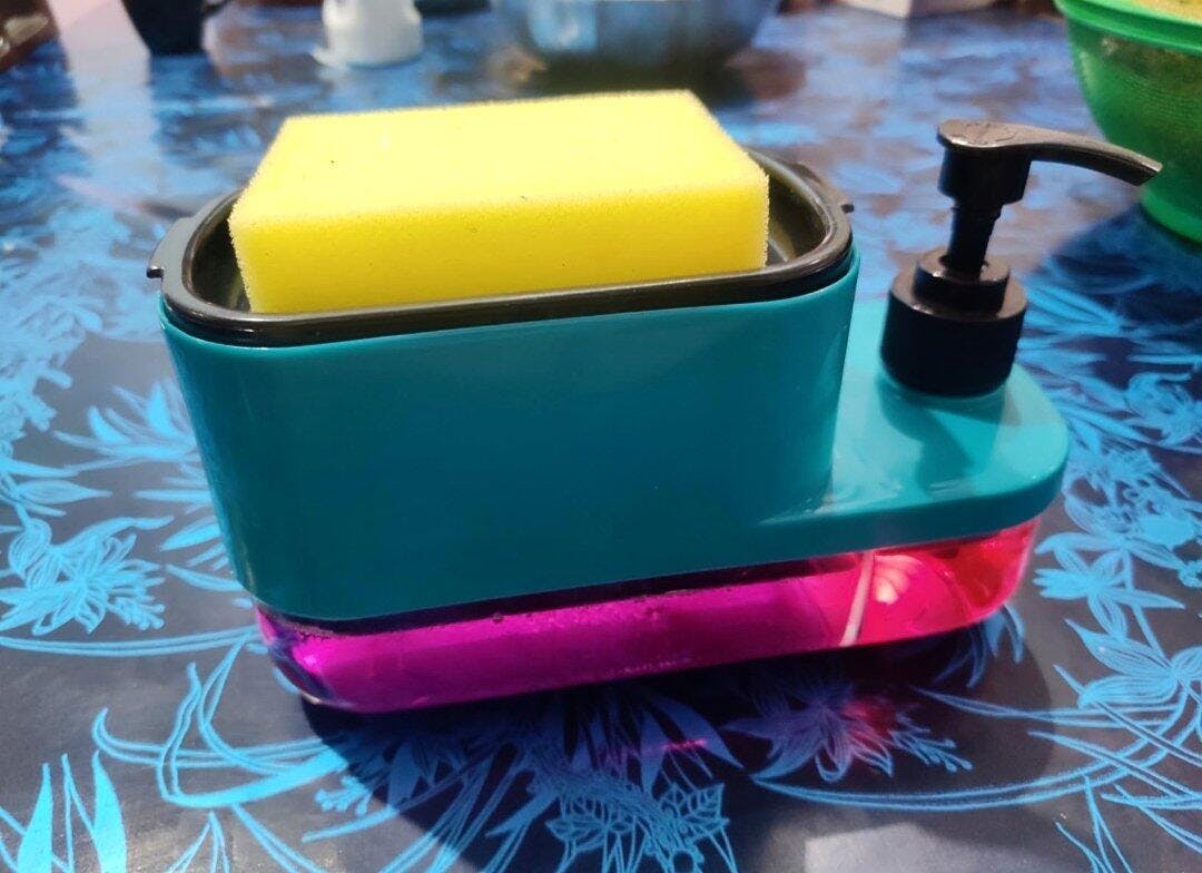 3-in-1 use – soap pump, sponge holder, detachable dish
